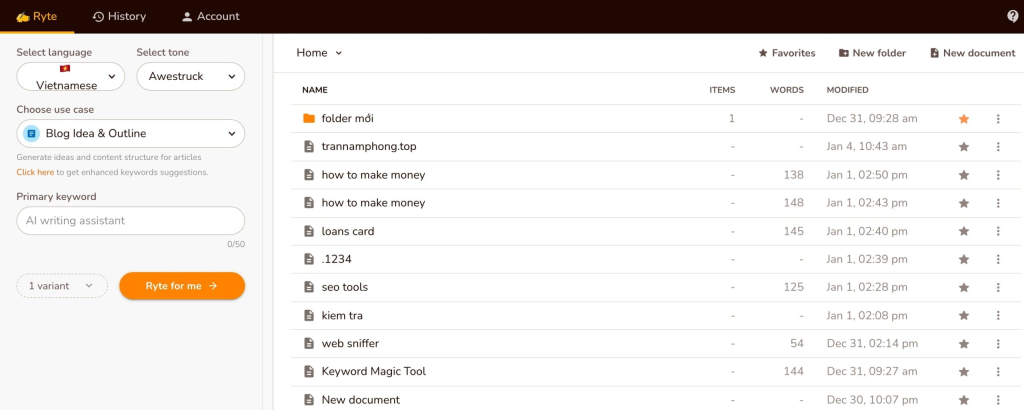I would place Rytr first for people who mainly need help with day-to-day short-form writing: CTAs, product descriptions, captions, email drafts, quick intros, short blog sections, and similar tasks. It reduces the fear of the blank page without forcing you to become a prompt engineer first.